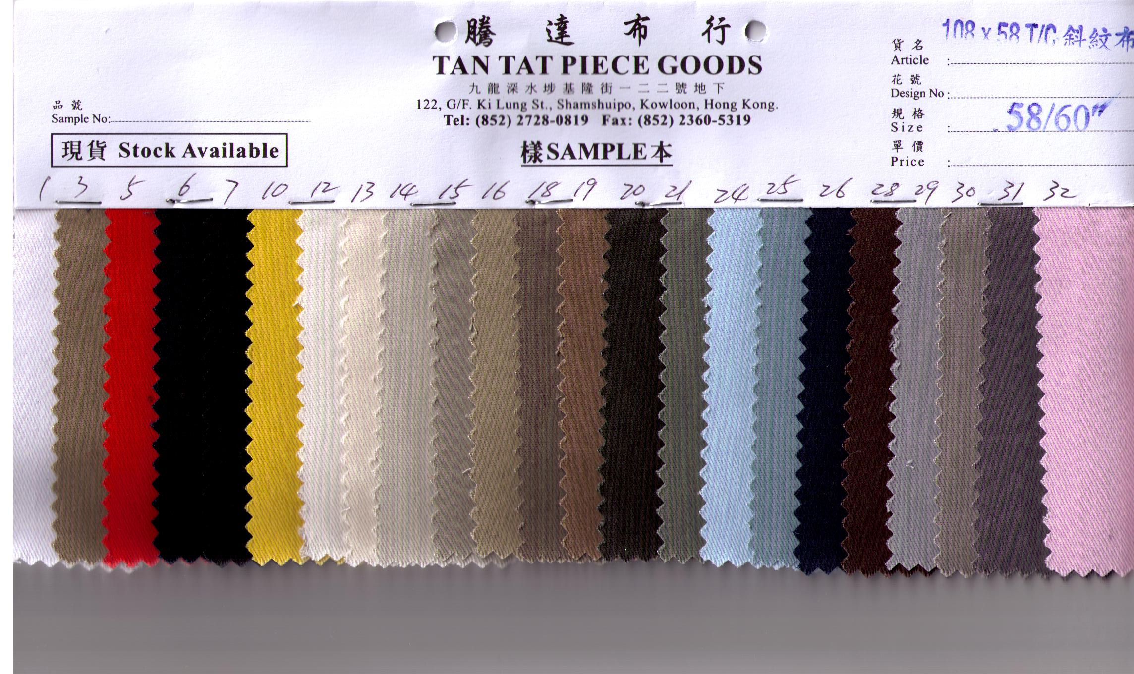 Below are some of our 100% T/C Fabric, 98% of the product are stock available!